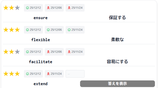 A. 最終回答日時・モード・正誤の履歴などによって、自動的に復習日を決定しています。